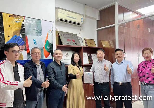 2022年3月4日,廣東省安全生產協會勞動防護分會會長李聲譽、秘書長祝平、副秘書長杜玉霜一行到達副會長單位——梧州市友盟焊接防護用品有限公司,受到了友盟總監鄒暖春及公司各區域負責人的熱情接待。