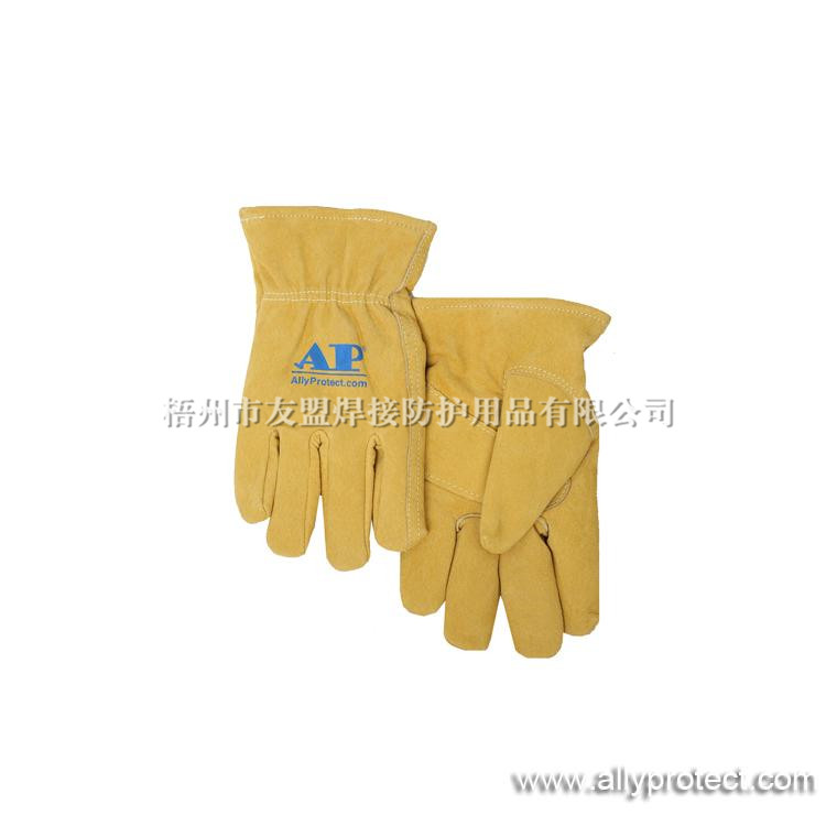 該款防寒手套采用優質的金黃色豬青皮制作,里層采用保暖舒適的羊羔里;