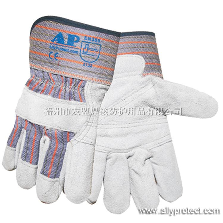 該款手套掌位部分采用耐磨、抗穿插的原色牛二層皮制成,質地厚實且柔軟舒適,抗穿插及內磨程度均勻;